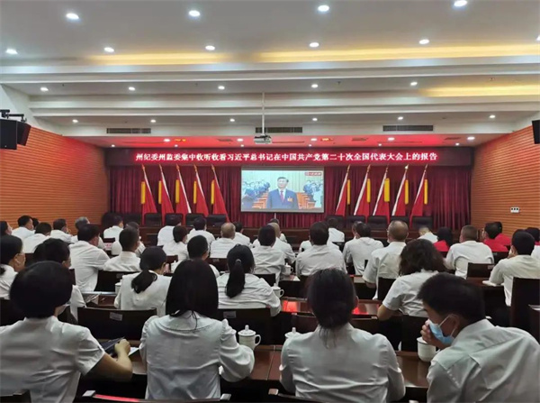 怒江傈僳族自治州紀委監(jiān)委全體紀檢監(jiān)察干部一同收聽收看黨的二十大開幕會實況。