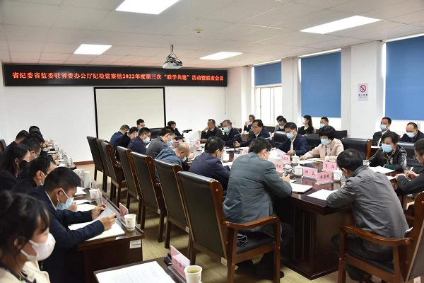 為凝聚共同推進(jìn)紀(jì)檢監(jiān)察工作的合力,11月4日,駐省委辦公廳紀(jì)檢監(jiān)察組組織開展2022年度第三次“聯(lián)學(xué)共建”活動暨聯(lián)席會議。省委辦公廳、省委政法委、省委政策研究室、省委黨史研究室、省檔案局、省接待辦相關(guān)負(fù)責(zé)人,機(jī)關(guān)紀(jì)委人員及駐省委辦公廳紀(jì)檢監(jiān)察組黨員干部參加活動。