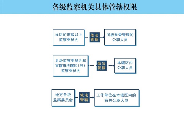 縣級監察委員會和直轄市所轄區(縣)監察委員會按照管理權限,依法管轄本轄區內公職人員涉嫌職務違法和職務犯罪案件。