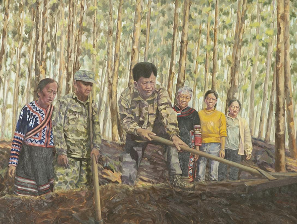 油畫作品《農(nóng)民院士》還原了“時代楷模”朱有勇院士帶領(lǐng)瀾滄縣少數(shù)民族群眾種植林下三七的真實場景。近年來,普洱市依托院士專家工作站這個“聚寶盆”,依靠科技力量培育綠色產(chǎn)業(yè),使科技精準(zhǔn)脫貧取得了明顯成效。