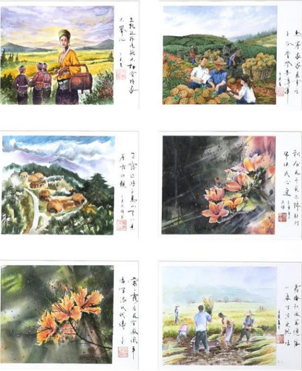 《二十四節(jié)氣組圖》是普洱市景谷傣族彝族自治縣紀(jì)委監(jiān)委六名廉政監(jiān)督員集體創(chuàng)作的。“立春時節(jié)打陀螺,盛世中華唱贊歌”“立夏荷花朵朵圓,廉潔紀(jì)律記心田”“夏至天熱日子長,打虎拍蠅在路上”……水粉畫上提寫廉政警句,既展現(xiàn)了普洱的民俗文化,又書寫了普洱大地的清風(fēng)正氣。