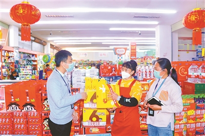春節(jié)前夕,云南省西盟佤族自治縣紀(jì)委監(jiān)委成立檢查組,前往城區(qū)部分酒店、超市、煙酒專賣店,對(duì)節(jié)前公款消費(fèi)情況開(kāi)展監(jiān)督檢查,保障廉潔過(guò)節(jié)。圖為近日,該縣紀(jì)檢監(jiān)察干部在超市了解有關(guān)情況。楊夢(mèng)笛 攝