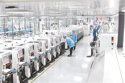 2月8日,浪潮超高清新型顯示制造基地在山東濟南正式啟用。該項目一期項目建設面積6700平方米,生產線可年產LED模組達4萬平方米。圖為制造基地內,工作人員在生產線上操作設備。新華社記者 徐速繪 攝