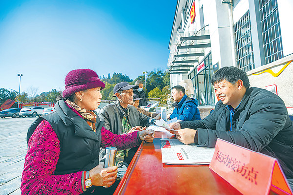 浙江省淳安縣紀(jì)委監(jiān)委聚焦村集體“三資”管理、惠農(nóng)政策落實(shí)等問(wèn)題,組織紀(jì)檢監(jiān)察干部深入基層一線開展流動(dòng)接訪,聽取群眾意見建議,收集問(wèn)題線索,推動(dòng)解決群眾急難愁盼問(wèn)題。圖為該縣紀(jì)檢監(jiān)察干部在文昌鎮(zhèn)西河村開展流動(dòng)接訪。謝航凱 攝