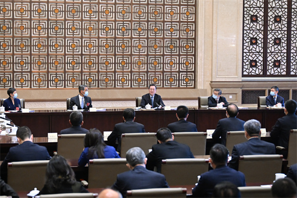 3月6日,中共中央政治局常委趙樂際看望出席全國政協(xié)十四屆一次會議的民革、臺盟、臺聯(lián)界委員并參加討論。 新華社記者 岳月偉 攝