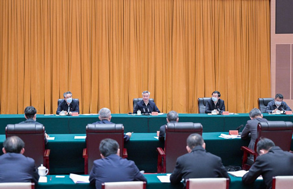 3月19日至21日,中共中央政治局常委、中央紀(jì)委書記李希到湖北調(diào)研。這是3月21日,李希主持召開部分省市紀(jì)委書記座談會(huì)。新華社記者 岳月偉 攝