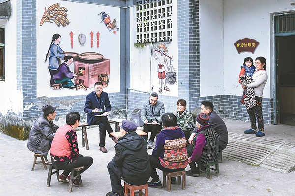 重慶市巴南區紀委監委創新方式推進家風助廉行動,讓經典家風家訓、優秀傳統文化深入人心。圖為日前,該區南彭街道紀工委干部到塔落村走訪并開展聽家風家訓、講家規家德故事活動。 鄧箭 攝