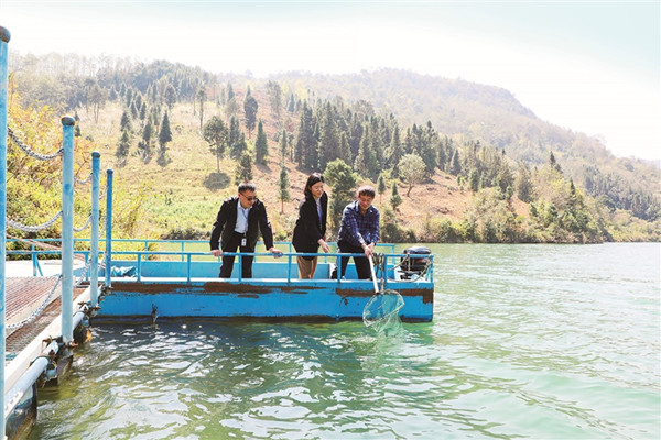 云南省文山壯族苗族自治州文山市紀(jì)委監(jiān)委聚焦中央生態(tài)環(huán)保督察反饋問題整改責(zé)任、河(湖)長制等重點工作落實,充分發(fā)揮派駐機構(gòu)“駐”的優(yōu)勢,督促各責(zé)任部門履職盡責(zé)、統(tǒng)籌協(xié)調(diào),實現(xiàn)多部門資源整合,一體推進(jìn)“湖泊革命”。圖為該市紀(jì)檢監(jiān)察干部到大型水利工程德厚水庫實地查看水質(zhì)情況。王銘堅 攝