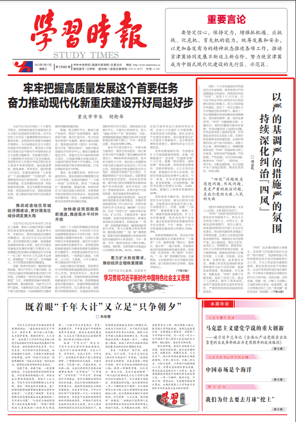 5月17日,《學(xué)習(xí)時(shí)報(bào)》頭版刊發(fā)云南省委常委、省紀(jì)委書記、省監(jiān)委主任馮志禮署名文章《以嚴(yán)的基調(diào)嚴(yán)的措施嚴(yán)的氛圍持續(xù)深化糾治“四風(fēng)”》。