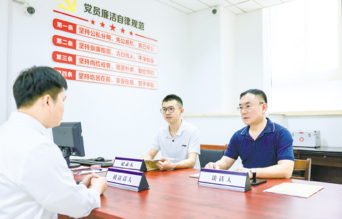 浙江省三門縣紀(jì)委監(jiān)委立足監(jiān)督首要職責(zé),堅(jiān)持抓早抓小、實(shí)事求是,對(duì)存在苗頭性、傾向性問(wèn)題的黨員干部及時(shí)談話函詢,讓紅臉出汗成為常態(tài)。圖為該縣紀(jì)檢監(jiān)察干部對(duì)相關(guān)人員進(jìn)行談話。陳昌暉 攝