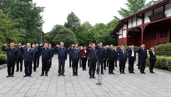 6月5日,參加省領(lǐng)導(dǎo)干部主題教育讀書班的全體學(xué)員在扎西會(huì)議會(huì)址,重溫入黨誓詞。