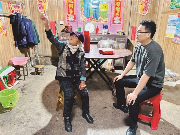 圖為浙江省杭州市淳安縣中洲鎮霞童村黨支部書記助理、杭州市紀委監委第九審查調查室干部張哲在走訪獨居困難老人。汪夢婷 攝