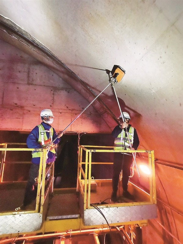 圖為重慶市工程質量檢測機構工作人員運用智能采集、市檢測行業大數據平臺開展現場采集。重慶市紀委監委 供圖