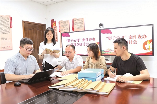 為持續深化對“影子公司”“影子股東”等新型腐敗和隱性腐敗的查處,浙江省開化縣紀委監委建立定期研討制度,綜合運用數據比對、交流研判等方式,分析案件查辦重難點問題。圖為該縣紀檢監察干部圍繞“影子公司”案件查辦重難點開展分析研討。葉夢婷 攝