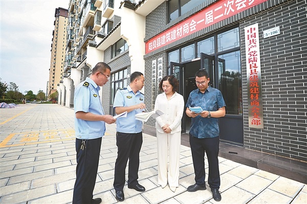云南省陸良縣市場監管部門圍繞民生發展重點領域,深入行業協會組織開展反壟斷法宣傳活動。圖為近日,該縣市場監管局工作人員到建筑建材商會宣傳反壟斷法。 王勇 攝