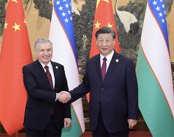 習(xí)近平指出,今年5月,我們在西安成功會晤,就兩國關(guān)系發(fā)展達(dá)成的重要共識正在得到全面落實。中國正在以中國式現(xiàn)代化全面推進(jìn)強國建設(shè)、民族復(fù)興。烏方出臺“烏茲別克斯坦-2030”戰(zhàn)略。兩國發(fā)展目標(biāo)相似,理念契合。中方愿以共建“一帶一路”倡議提出10周年為契機(jī),同烏方在國家現(xiàn)代化進(jìn)程中互學(xué)互鑒、相互支持、彼此成就,攜手建設(shè)中烏命運共同體,為地區(qū)和平和繁榮注入更多確定性和正能量。
