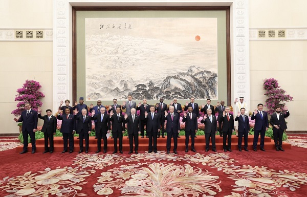 10月18日上午,國家主席習近平在北京人民大會堂出席第三屆“一帶一路”國際合作高峰論壇開幕式并發表題為《建設開放包容、互聯互通、共同發展的世界》的主旨演講。這是會前,習近平同出席高峰論壇的外國國家元首、政府首腦和國際組織負責人等國際貴賓集體合影。新華社記者 黃敬文 攝