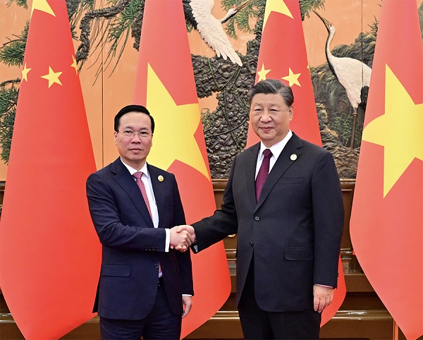 10月20日上午,國家主席習(xí)近平在人民大會堂會見來華出席第三屆“一帶一路”國際合作高峰論壇的越南國家主席武文賞。