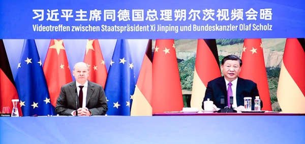 11月3日下午,國(guó)家主席習(xí)近平同德國(guó)總理朔爾茨舉行視頻會(huì)晤。