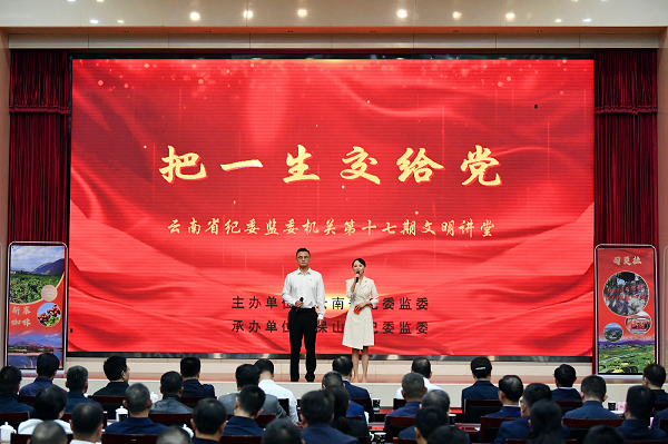 本期文明講堂由省紀委監委主辦,保山市紀委監委承辦。講堂以“把一生交給黨”為主題,以情景劇、現場講述、合唱、小品等形式,展現了保山廣大黨員干部和群眾牢記囑托、堅定信仰,把一生交給黨的生動故事,激勵廣大紀檢監察干部以更加強烈的憂黨之心、為黨之責、強黨之志正風肅紀反腐,奮力譜寫云南紀檢監察工作新篇章。