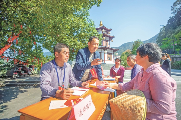 浙江省淳安縣紀委監委通過流動接訪、入戶走訪等方式,面對面傾聽民聲民意,收集問題線索,推動解決群眾急難愁盼問題。圖為近日,該縣紀檢監察干部在里商鄉開展流動接訪。 謝航凱 攝