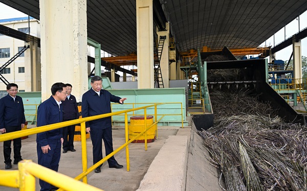 隨后,習近平到來賓東糖鳳凰有限公司考察。他進入生產車間察看制糖工藝和作業流程,在公司展廳了解糖業產品種類及市場份額和發展趨勢。他強調,我國糖業面臨激烈的國際競爭,要按照高端化、智能化、綠色化要求,加大科技創新力度,延伸產業鏈、提高附加值,不斷提質、降本、增效,推動高質量發展。離開企業時,習近平熱情地對前來歡送的員工們說,食糖是重要的副食品,大家為此辛勤勞動,為千家萬戶送去了“甜蜜”。希望大家不斷學習新技術、采用新工藝,為糖業發展作出新貢獻。