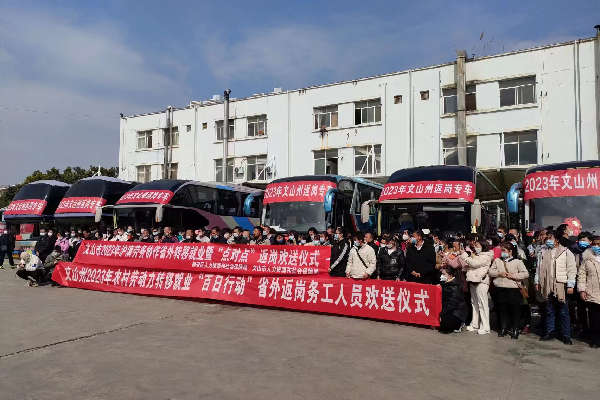 文山州各級紀檢監(jiān)察機關以監(jiān)督促聯(lián)動,推動人社部門主動聯(lián)系江浙臺州、廣東中山、上海虹口等輸入地人社部門,銜接聯(lián)合為外出務工人員提供便利和資金補助,協(xié)調交通運輸企業(yè)為外出務工人員安排專列、專機、專車,減少外出務工中間環(huán)節(jié),助力農村勞動力轉移就業(yè)增加收入。同時,通過線上排查、電話了解、暗訪檢查等方式,對務工人員外出務工臺賬、動向及相關政策落實情況跟進監(jiān)督,及時掌握相關職能部門履職盡責情況,確保各項服務保障政策落到實處。截至2月7日,文山州實現(xiàn)農村勞動力轉移107.51萬人,其中省外59.3萬人,省內48.21萬人;全州開展“點對點、一站式”輸出5.31萬人,其中與州交通運輸企業(yè)共同組織務工專車6603臺次、專列1列、包機2架次。