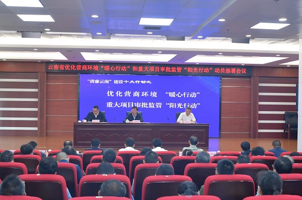 4月13日,全省優(yōu)化營商環(huán)境“暖心行動”和重大項目審批監(jiān)管“陽光行動”推進工作會議召開。會議就深入貫徹落實黨的二十大精神,認真落實省第十一次黨代會關(guān)于建設(shè)“清廉云南”以及省委十一屆三次全會關(guān)于深化拓展“清廉云南”行動的部署要求,對全省優(yōu)化營商環(huán)境“暖心行動”和重大項目審批監(jiān)管“陽光行動”工作進行動員部署。