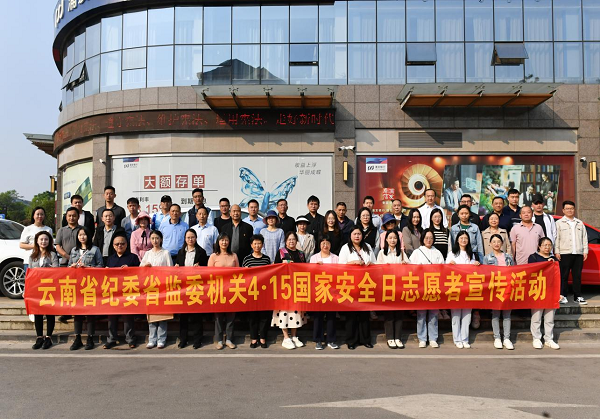 4月14日上午,省紀委省監委機關黨委組織機關各支部60多名黨員干部在昆明市西山區大壩社區開展“4·15全民國家安全教育日”普法宣傳活動。