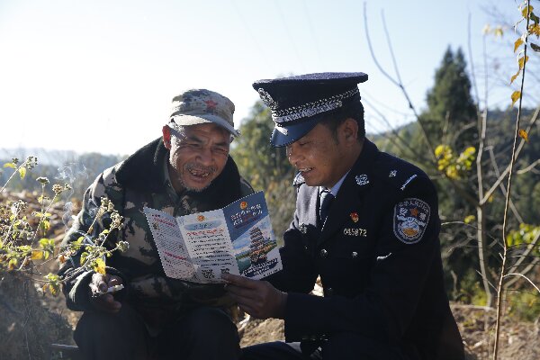 騰沖市公安局民警節假不休假,深入鄉村一線,為群眾宣傳、講解謹防電信詐騙的知識。(楊根蔚 攝)