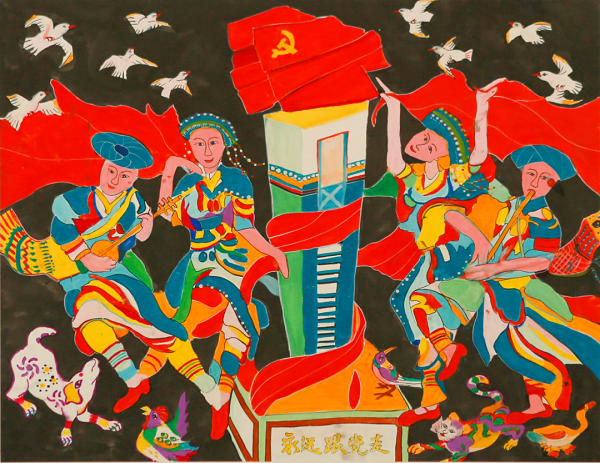 騰沖農(nóng)民畫《永遠(yuǎn)跟黨走》