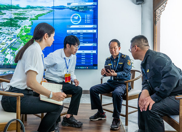 云南省大理白族自治州紀檢監察機關加大監督力度,構建起與職能部門聯動的大監督格局,推動洱海保護監督治理各項措施有效落實。圖為該州大理市紀檢監察干部在大理鎮龍龕村,向職能部門工作人員了解洱海生態廊道智慧監測站相關情況。趙渝 攝
