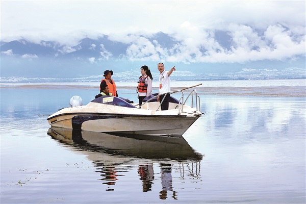 沿著湖岸漫步,記者在與市民聊天中感受到近年來洱海水質的變化。“這幾年洱海水質變好太多了。”白族市民李先生介紹,今年是他在洱海出水口游泳區游泳的第4年,相較以往,“水清了,藍藻變少了,上岸后也不會感覺身上黏黏癢癢的。”