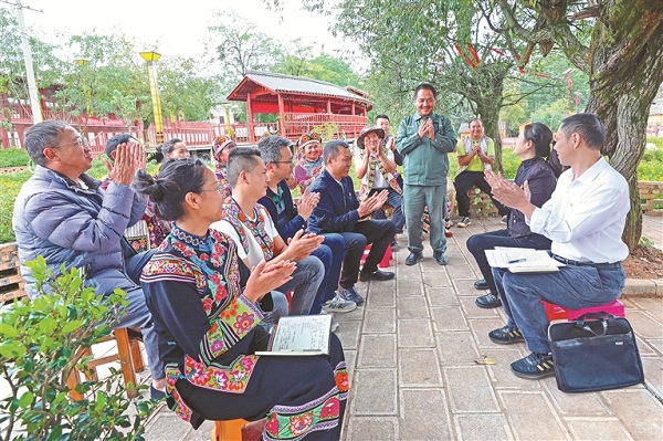 圖為云南省曲靖市陸良縣紀委監委到龍海鄉大新村村委會,為受到失實舉報的護林員黃某某當面澄清正名。王勇 攝