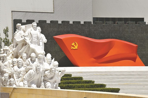 一百多年來,中國共產(chǎn)黨之所以能夠一步步由弱到強(qiáng)、由小到大,一次次浴火重生、絕處逢生,團(tuán)結(jié)帶領(lǐng)人民創(chuàng)造出彪炳史冊(cè)的偉大成就,其重要?dú)v史經(jīng)驗(yàn)之一,就在于堅(jiān)持自我革命。圖為中國共產(chǎn)黨歷史展覽館門前的大型雕塑。 圖片來源:視覺中國