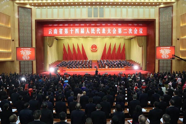 1月24日上午9時(shí),云南省第十四屆人民代表大會(huì)第二次會(huì)議在昆明云南海埂會(huì)堂開(kāi)幕。陳飛 高吳雙 攝