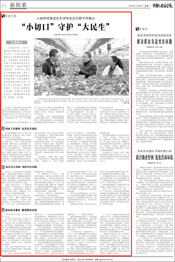 2024年1月29日,《中國紀檢監察報》深度報道:云南持續推進民生領域突出問題專項整治 “小切口”守護“大民生”。