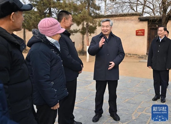 2月1日至3日,中共中央政治局常委、中央紀委書記李希到河北調(diào)研。這是2月3日,李希在西柏坡與當?shù)厝罕娊涣鳌P氯A社記者 岳月偉 攝