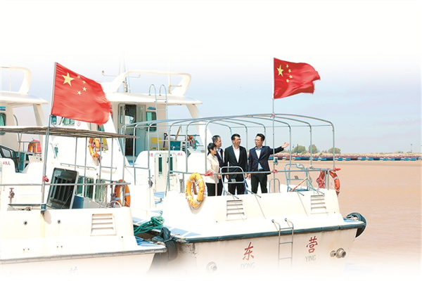 圖①:近日,山東省東營市紀委監委干部在黃河三角洲國家級自然保護區了解相關工程推進情況。張增文 攝
