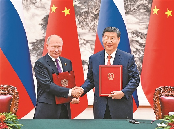 會談后,兩國元首共同簽署并發表《中華人民共和國和俄羅斯聯邦在兩國建交75周年之際關于深化新時代全面戰略協作伙伴關系的聯合聲明》,并共同見證簽署經貿、自然保護、檢驗檢疫、媒體等領域多項雙邊合作文件。