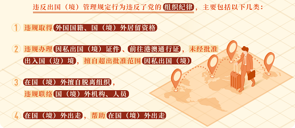 《中國共產黨紀律處分條例》對違反出國(境)管理規定行為列出負面清單,作出處分規定。
