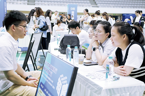 6月21日,高校畢業生在浙江省杭州市桐廬縣青年人才留桐融桐專場招聘會尋找心儀崗位。