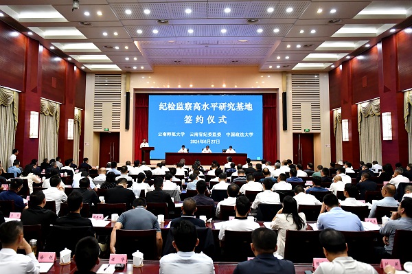 6月27日,“紀(jì)檢監(jiān)察高水平研究基地”簽約儀式在昆舉行。云南省紀(jì)委監(jiān)委、中國(guó)政法大學(xué)、云南師范大學(xué)三方代表共同簽署了《“紀(jì)檢監(jiān)察高水平研究基地”合作共建協(xié)議》。