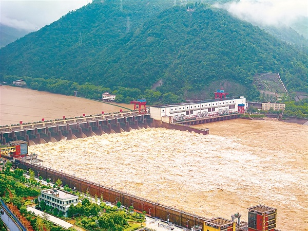 受富春江流域上游浙江金華衢州地區連續降雨影響,加之新安江大壩泄洪措施,富春江水庫的防汛形勢嚴峻。圖為6月27日,富春江大壩開閘泄洪,保持出入庫平衡。 圖片來源:視覺中國