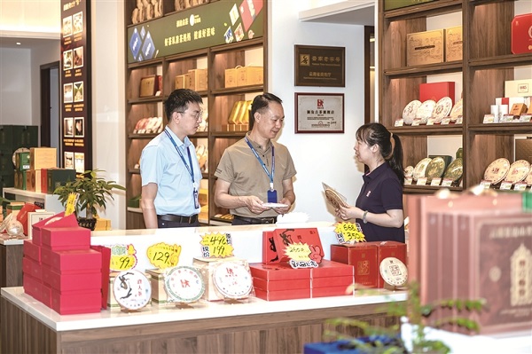 廣西壯族自治區柳州市紀委監委聚焦易發多發“四風”問題, 深挖違規公款購買名貴特產、購物卡,違規吃請等問題。圖為近日,該市紀檢監察干部到某茶葉店了解相關情況。 覃智鋒 攝