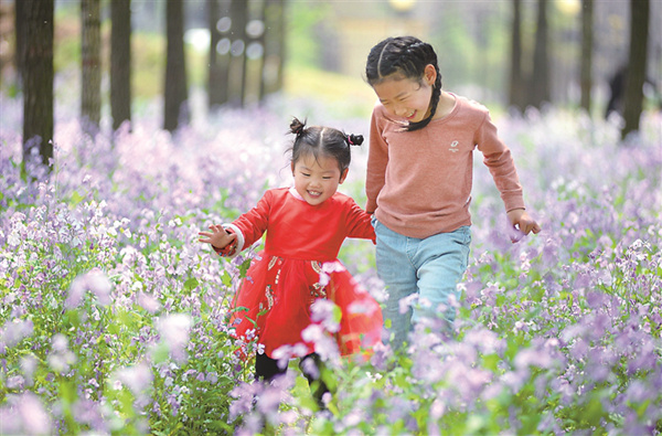小朋友們在山東省滕州市上善公園玩耍。李志軍 攝