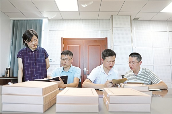 江蘇省金湖縣紀委監委緊盯國有資產評估領域突出問題,強化類案分析研判,深入剖析問題背后深層次原因,推動行業主管部門建立健全機制,及時堵塞監管漏洞,確保國有資產評估規范準確。圖為近日,該縣紀檢監察干部在研判相關案件。 邵傳雯 攝