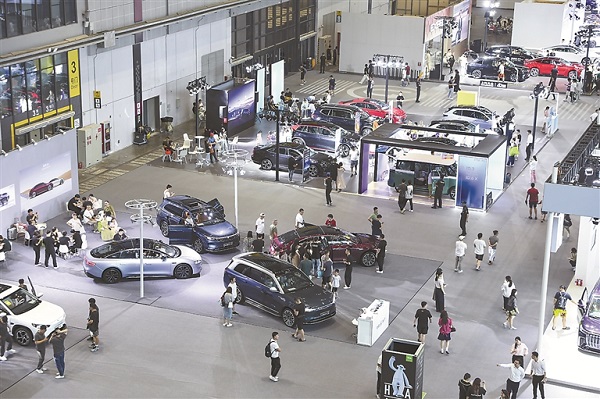 商務(wù)部等7部門日前發(fā)布《關(guān)于進(jìn)一步做好汽車以舊換新工作的通知》,汽車以舊換新補(bǔ)貼再度加碼,搭配新一期新能源下鄉(xiāng)活動(dòng)展開(kāi)、新能源汽車購(gòu)置稅減免等配套優(yōu)惠等政策,下半年汽車銷量有望得到進(jìn)一步提振。圖為近日,中國(guó)智能汽車及自動(dòng)駕駛博覽會(huì)上,消費(fèi)者正在選購(gòu)新能源汽車。圖片來(lái)源:視覺(jué)中國(guó)