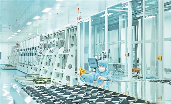 日前,江西省安遠(yuǎn)縣產(chǎn)城新區(qū)的一家光電科技有限公司智能化生產(chǎn)車間內(nèi),技術(shù)工人在調(diào)試新型生產(chǎn)設(shè)備。圖片來(lái)源:視覺(jué)中國(guó)