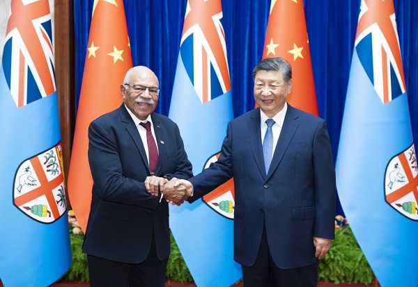 8月20日下午,國家主席習(xí)近平在北京人民大會(huì)堂會(huì)見來華正式訪問的斐濟(jì)總理蘭布卡。